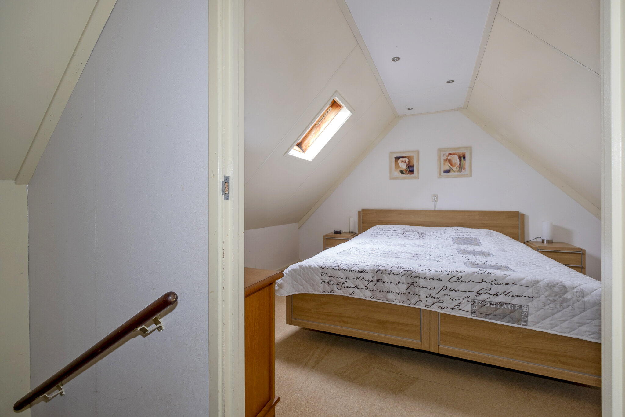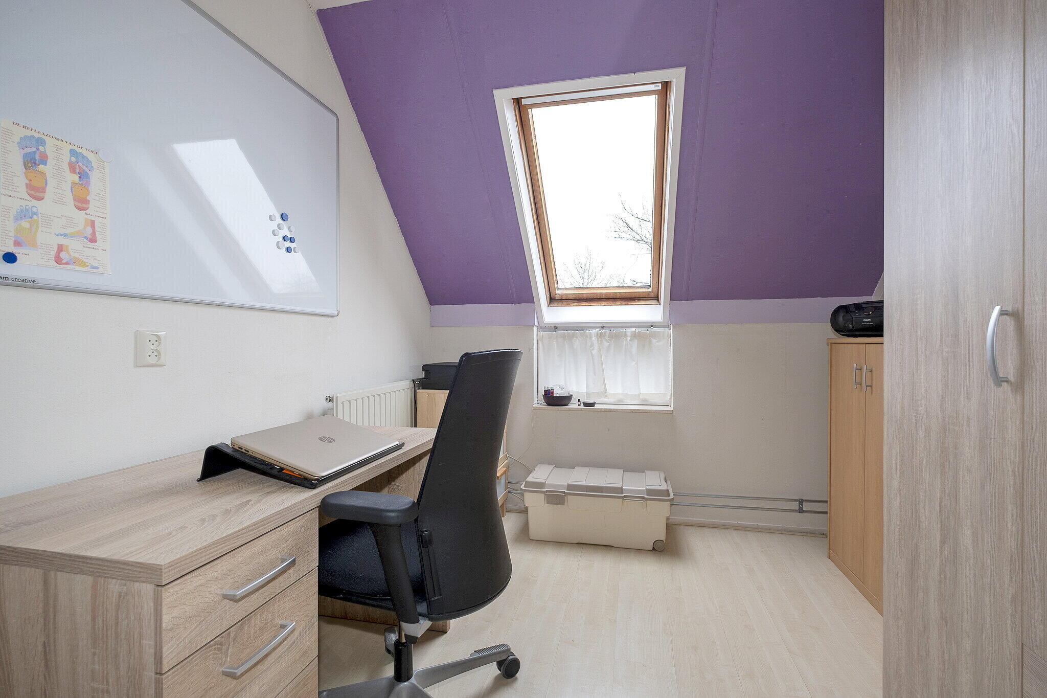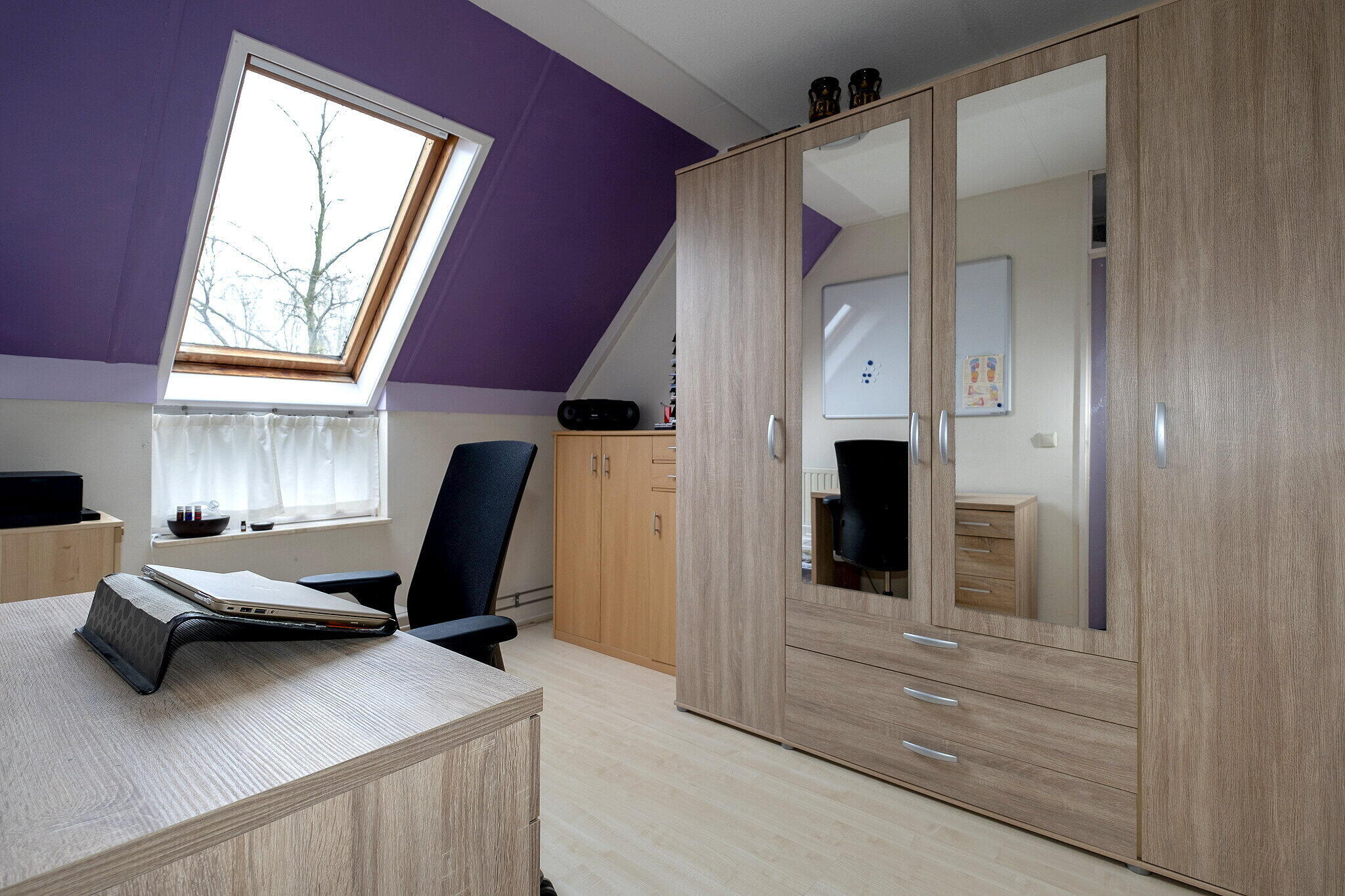 Overloop met bergruimte en extra slaapkamer. De vierde slaapkamer (ca. 8m²) heeft een Velux dakraam.