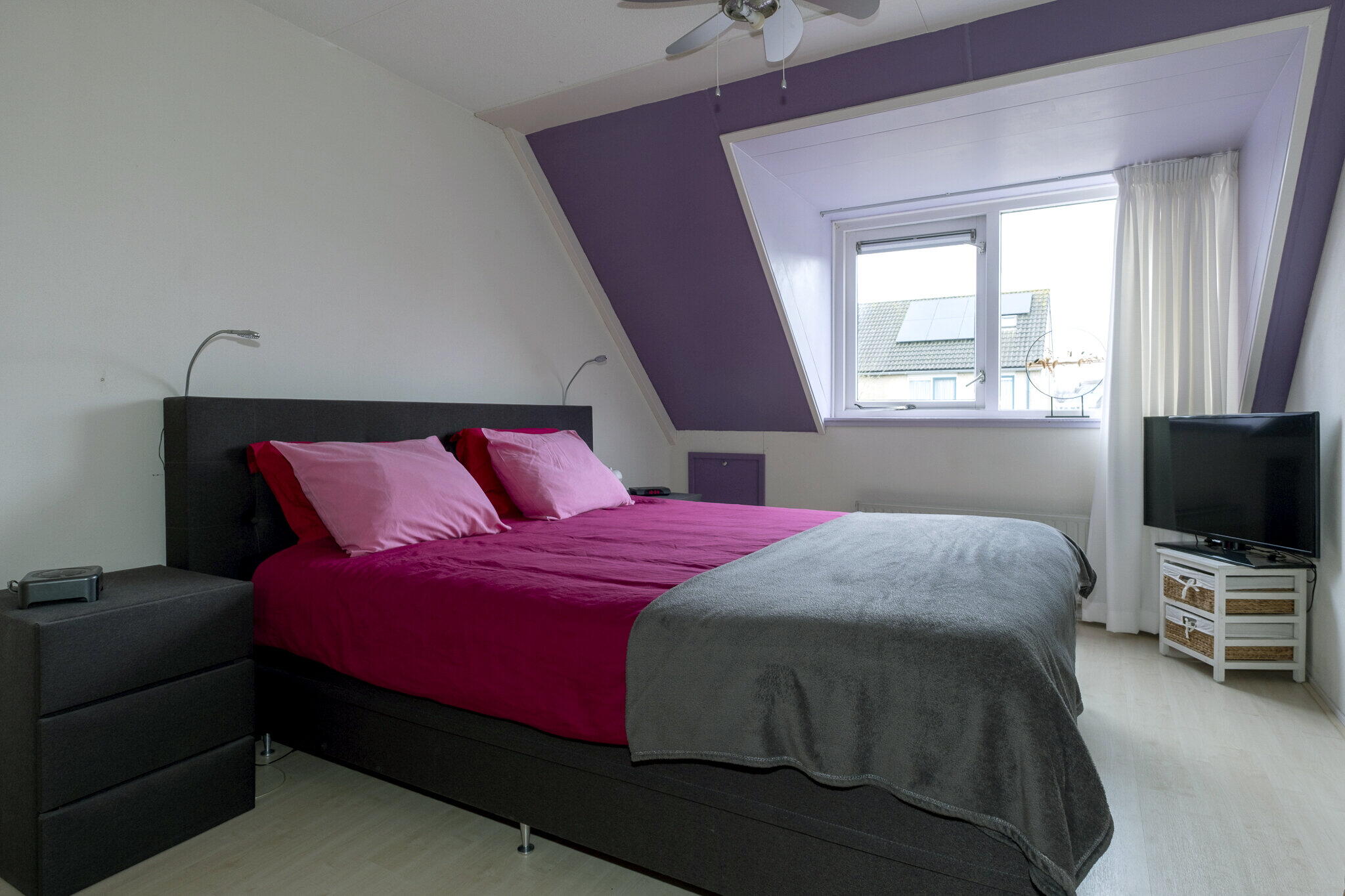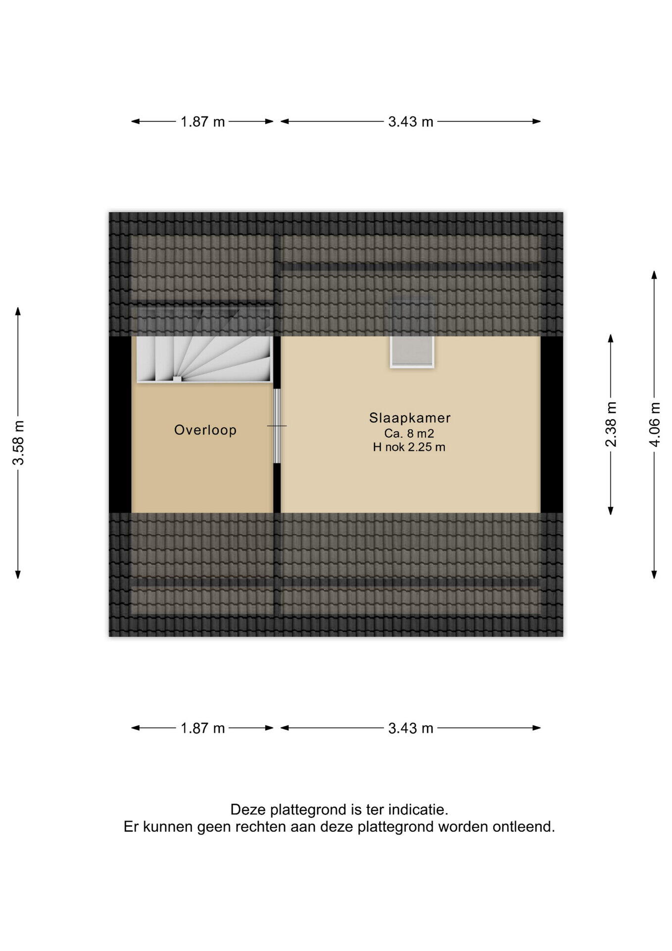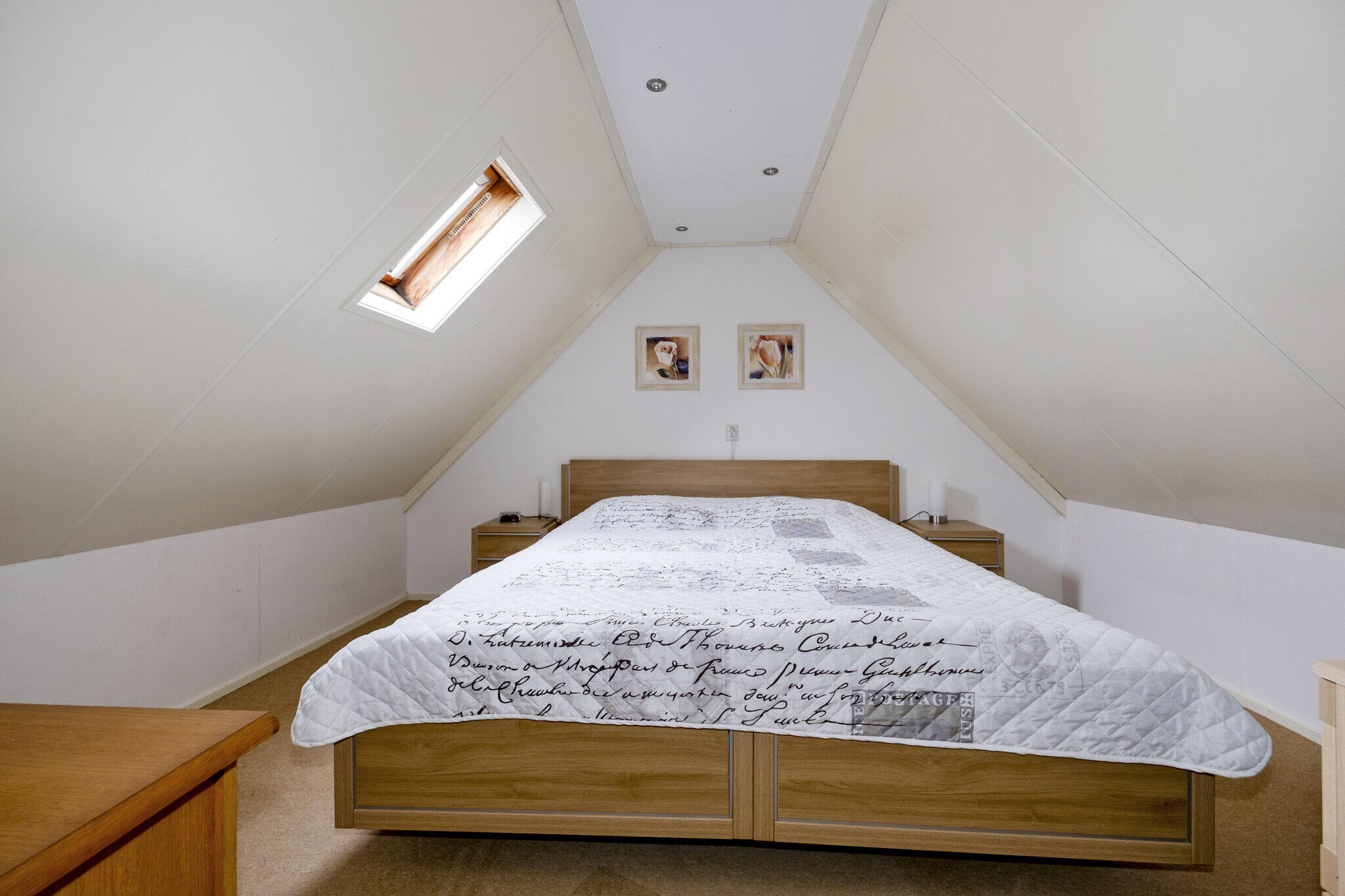 Overloop met bergruimte en extra slaapkamer. De vierde slaapkamer (ca. 8m²) heeft een Velux dakraam.